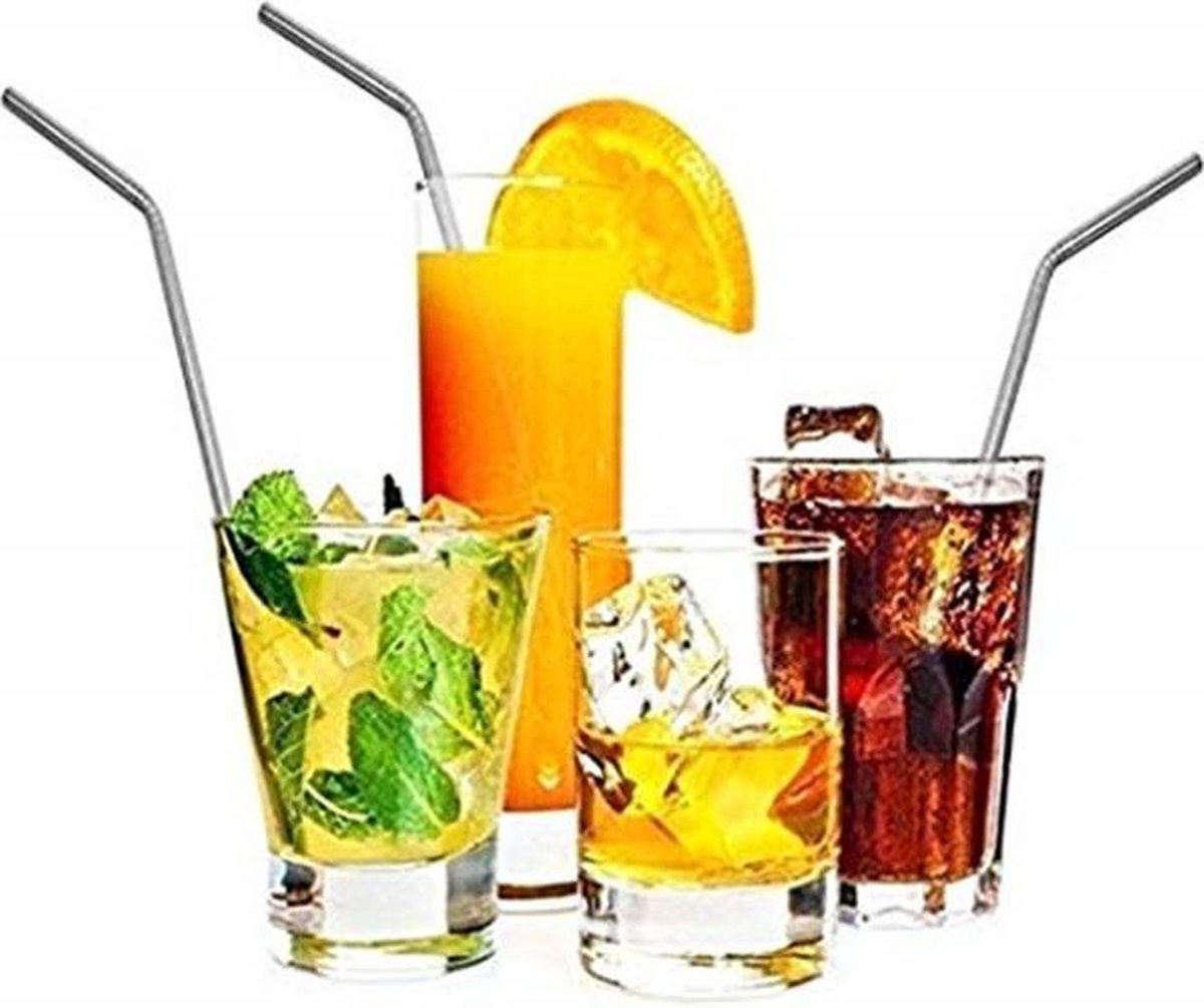 Stalen rvs rietjes herbruikbaar - set 8 stuks lengte 21,5cm (4 recht en 4 gebogen) incl. 2 schoonmaakborsteltjes - stijlvol en duurzaam - een bewust keuze voor het milieu